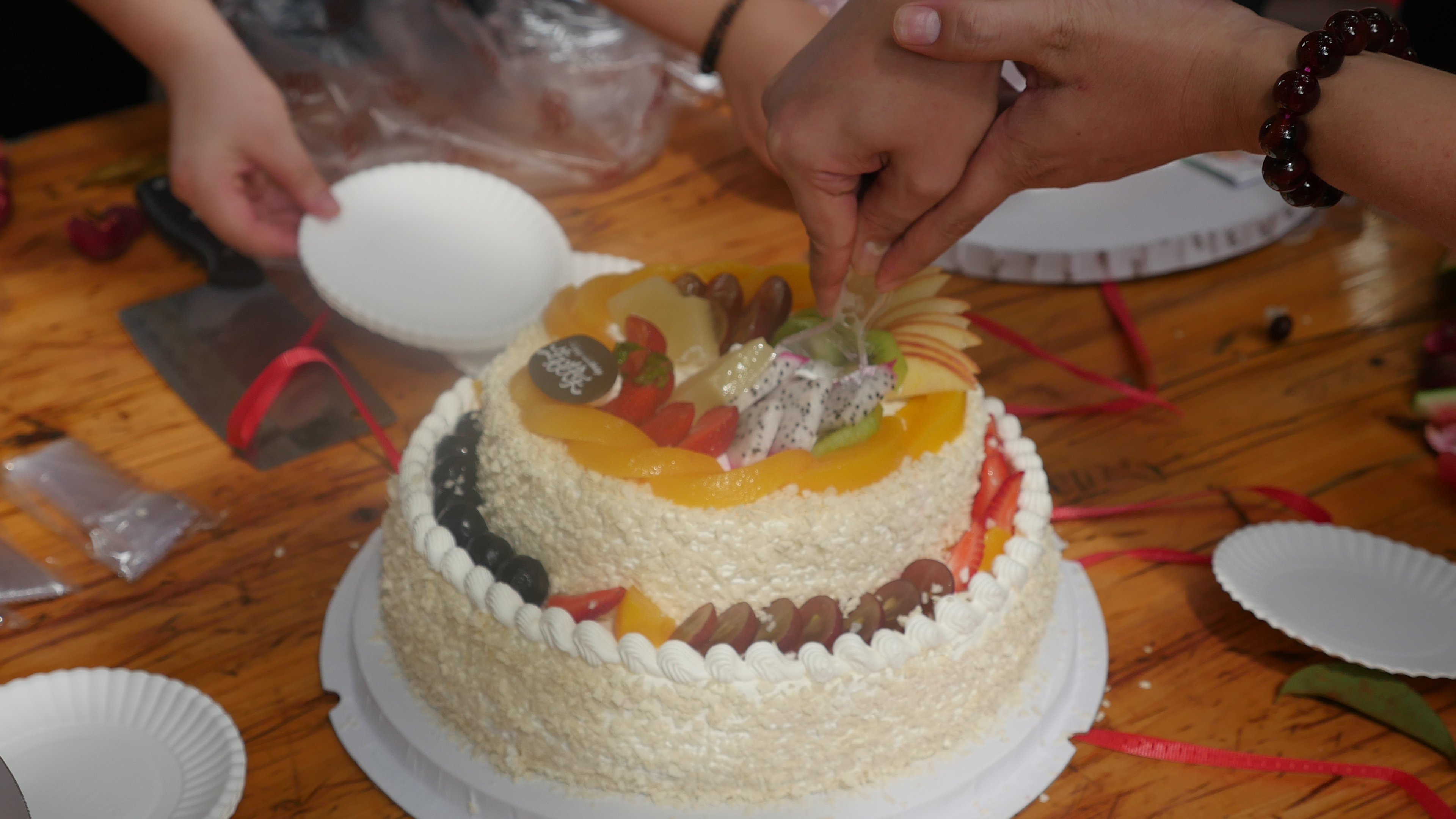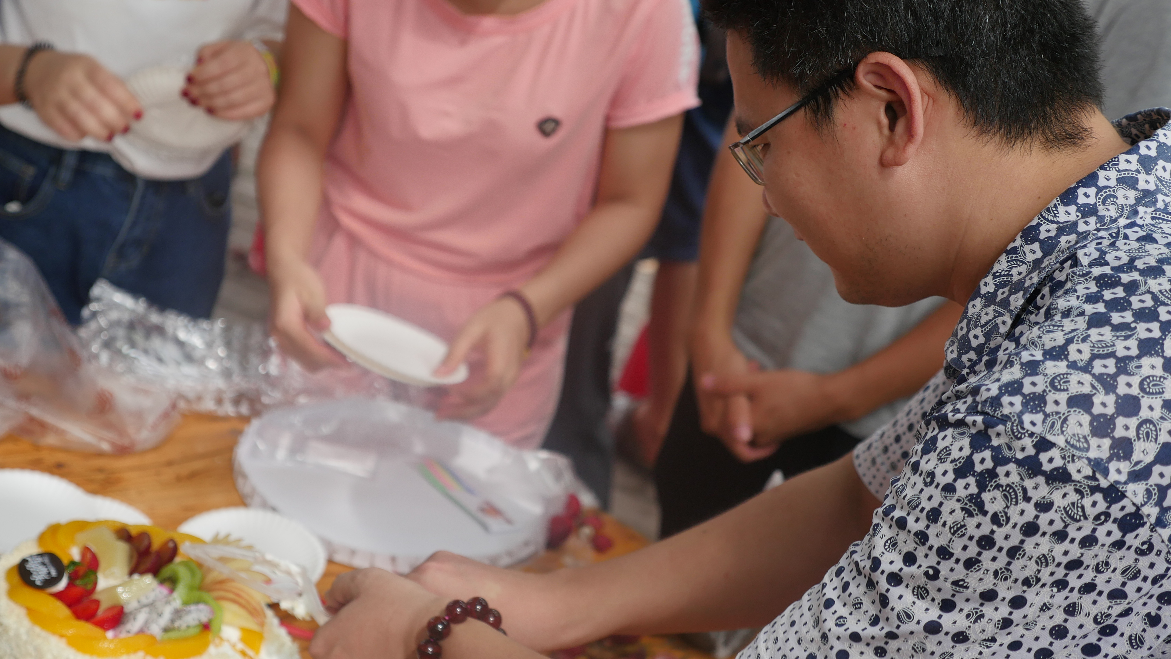 吃飽喝足稍作休息后,來到溫馨時刻——生日會。全體員工聚集在湖邊,在伴隨著清涼的湖風和生日快樂的歌聲下,為23位上半年生日的同事送上生日祝福。