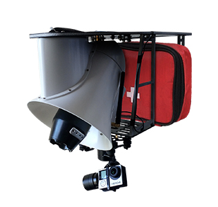 四合一掛載:喊話器、高清相機(jī)、照明設(shè)備、急救包設(shè)備