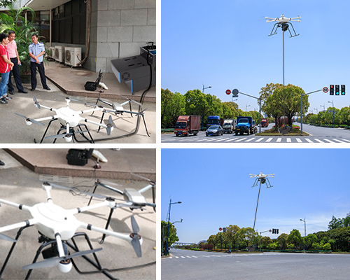 如果因交通事故造成堵塞的情況,民警只能在遠(yuǎn)處下車(chē),步行到現(xiàn)場(chǎng),而當(dāng)中一起交通事故一般堵塞1、2個(gè)小時(shí),導(dǎo)致費(fèi)時(shí)又費(fèi)力。通過(guò)無(wú)人機(jī)從空中去拍攝前方現(xiàn)場(chǎng),民警根據(jù)無(wú)人機(jī)回傳的圖像畫(huà)面,及時(shí)掌握現(xiàn)場(chǎng)情況以給出決策,比如,提前呼叫拖車(chē),這樣可以大大提高工作效率,最大限度地減少擁堵時(shí)間,以確保道路交通安全暢通。此外,如果需要長(zhǎng)時(shí)間查看道路情況,它還支持通過(guò)系留系統(tǒng)執(zhí)行任務(wù),能夠?qū)崿F(xiàn)一邊充電,一邊查看和回傳現(xiàn)場(chǎng)狀況,帶來(lái)更高效的執(zhí)法。