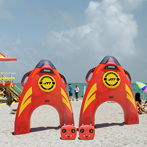 發現海邊遠處或近處有溺水狀況時,救生員可以立刻拋投R1,遙控出發營救溺水人員,速度可達到7m/s,以快速到達溺水者身邊。其次,它省去了花時間準備裝備、召集救生員的過程,可進行單兵操作,節省成本,提高效率。
