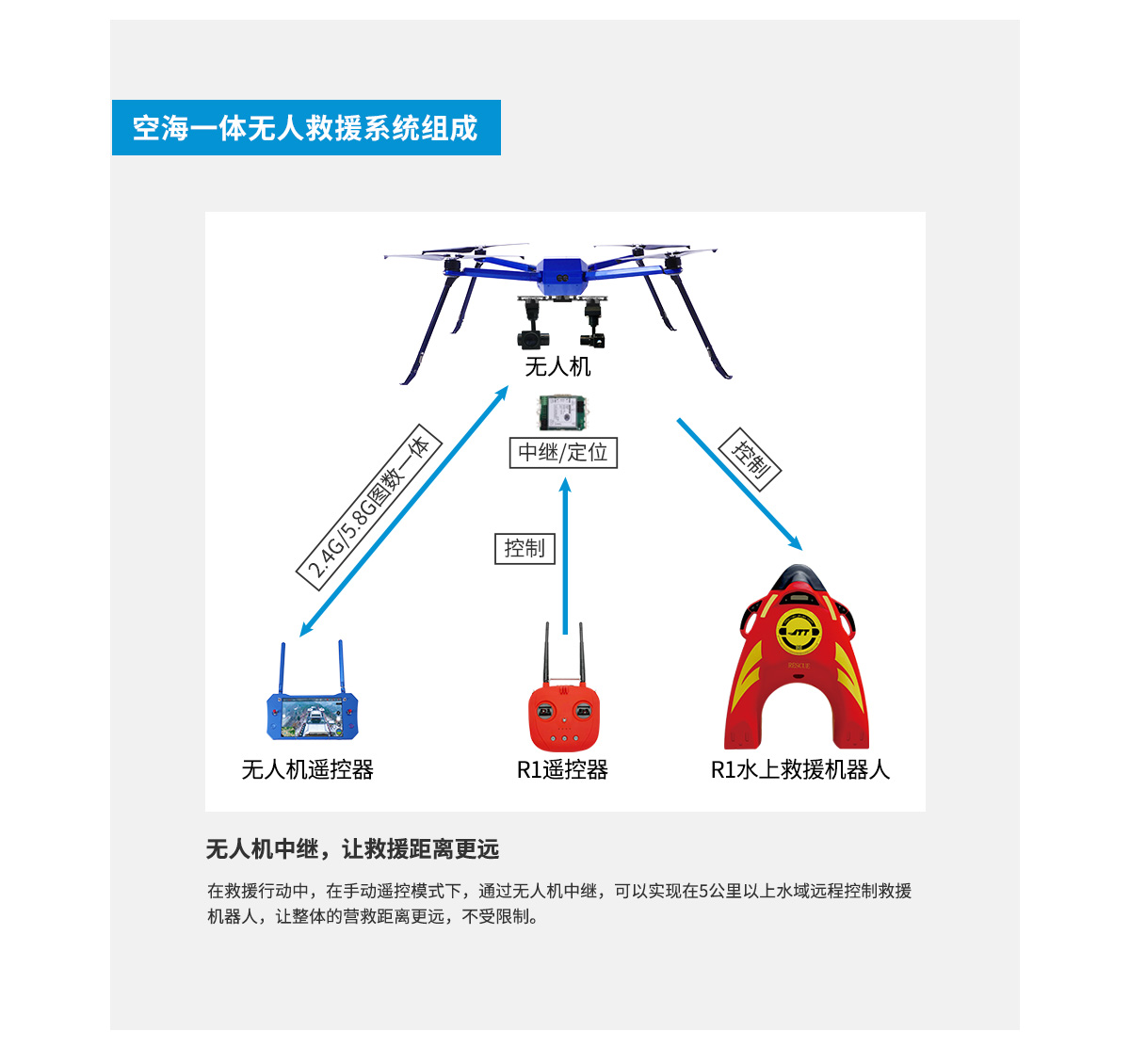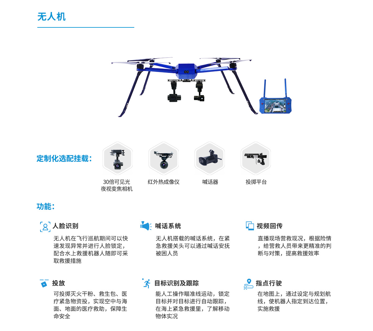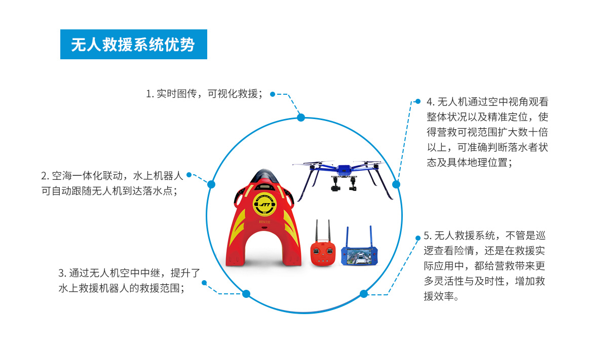 可以在巡邏或救援時候,實現最遠3KM無線傳輸,并給落水者喊話給予救援信號或安撫,提高救援效率