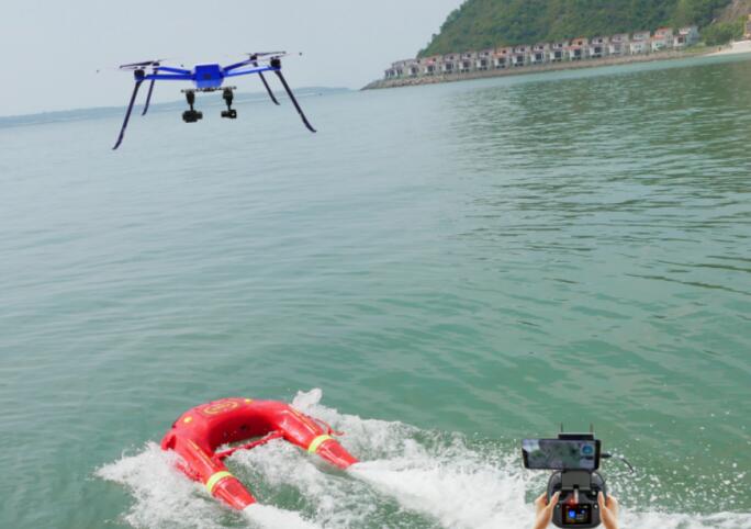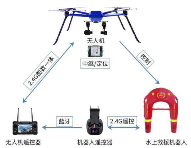 3.通過無人機空中中繼,提升了水上救援機器人的救援范圍,可以實現在5公里以上水域遠程控制救援機器人,讓整體的營救距離更遠,不受限制;
