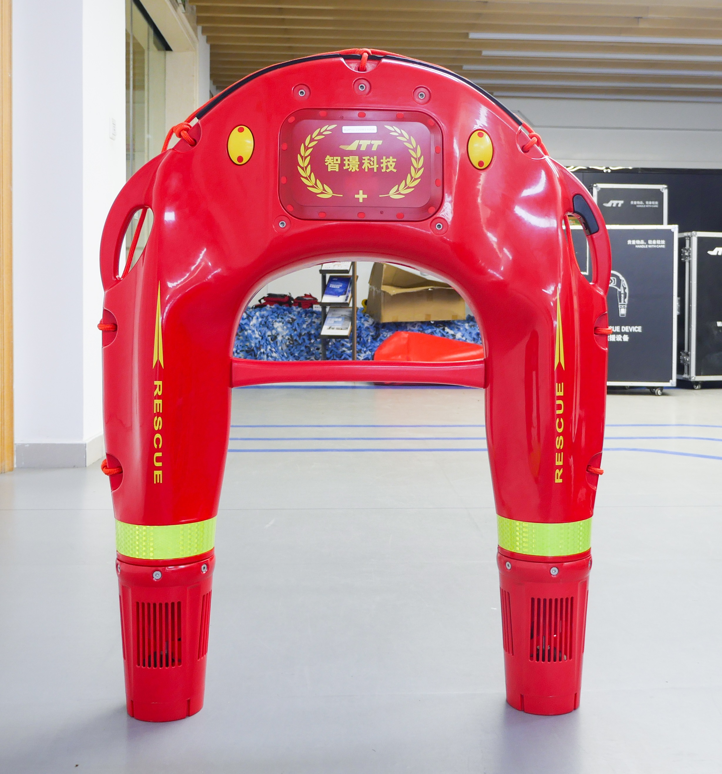 此外,機(jī)器人配備了黃色閃爍示位霧燈,在夜間或能見度低的情況下,依然能夠清晰可見,確保救援人員和落水者都能迅速定位機(jī)器人的位置。