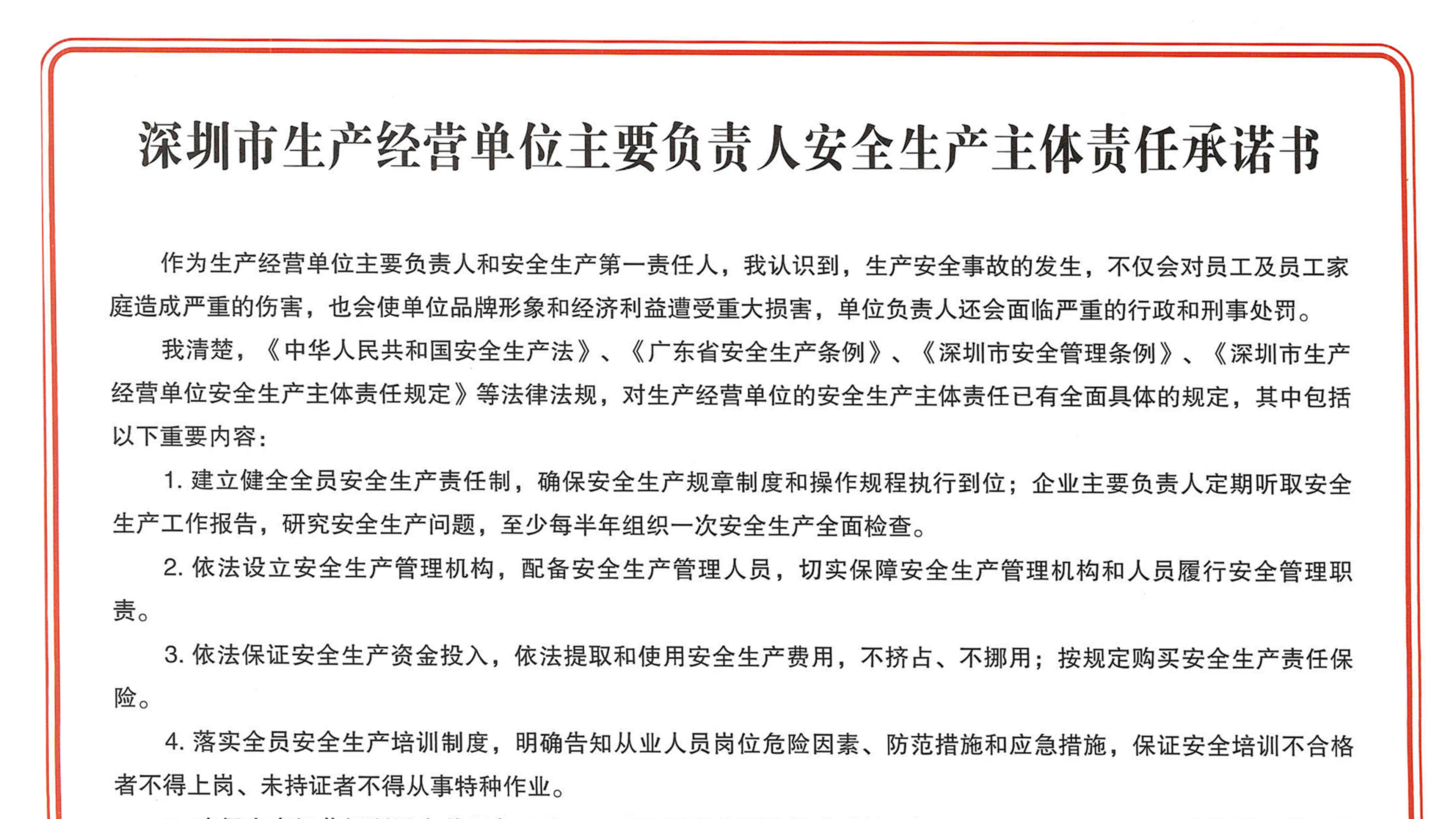 智璟科技簽署《深圳市生產經營單位主要負責人安全生產主體責任承諾書》