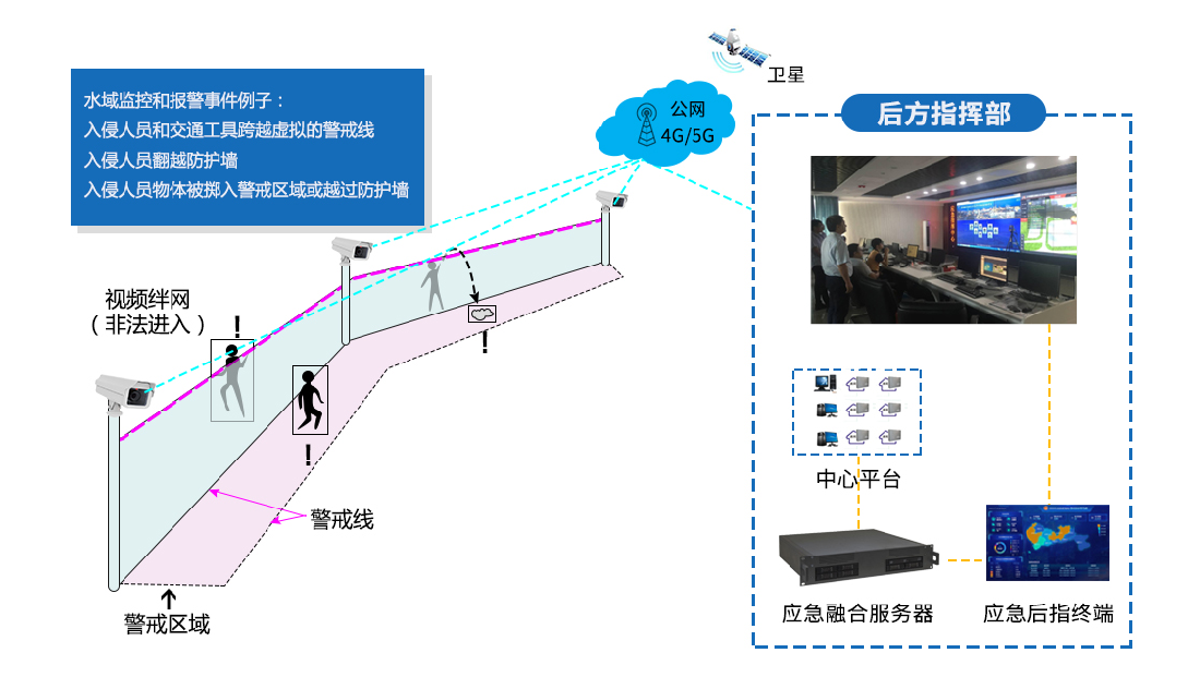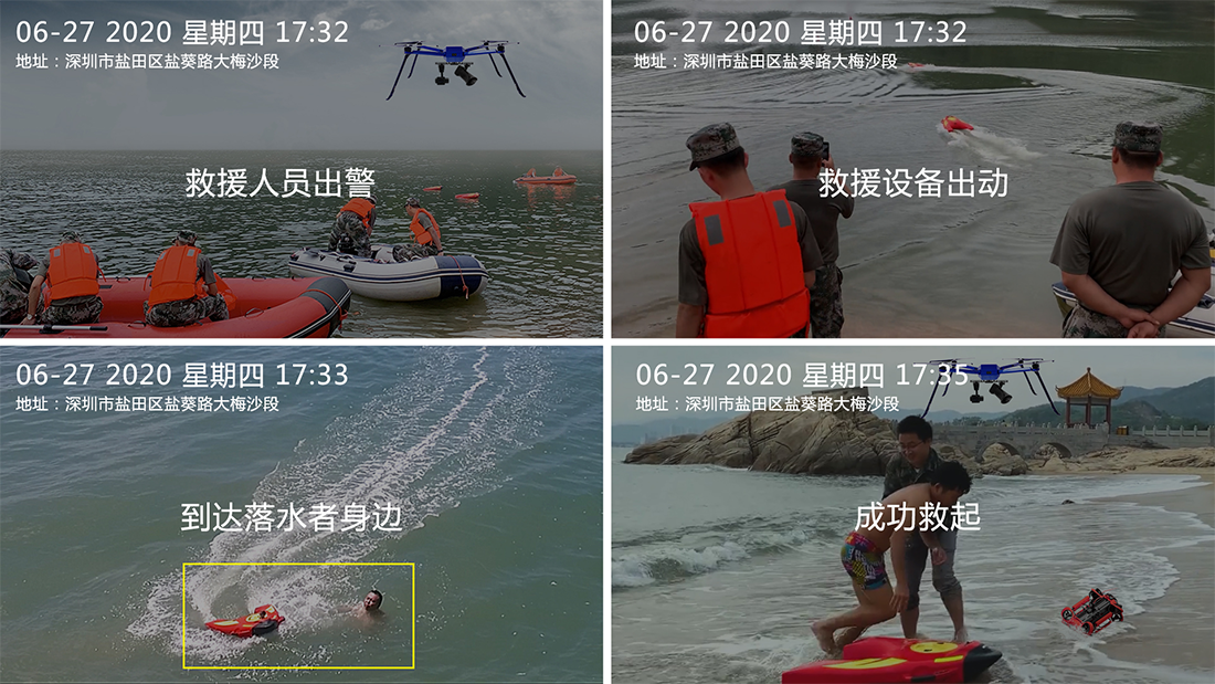 大海、湖泊、碼頭、濱江、河流,在我國大部分水域已納入管理,但因為人員游玩、聚集、活動等因素,水域的意外可能會容易發生。如果遇到危險,前端系統實時監控,遇到情況立即將傳輸現場圖像到后端,派遣前方水上救援機器人和人員前行營救,及時挽救損失。