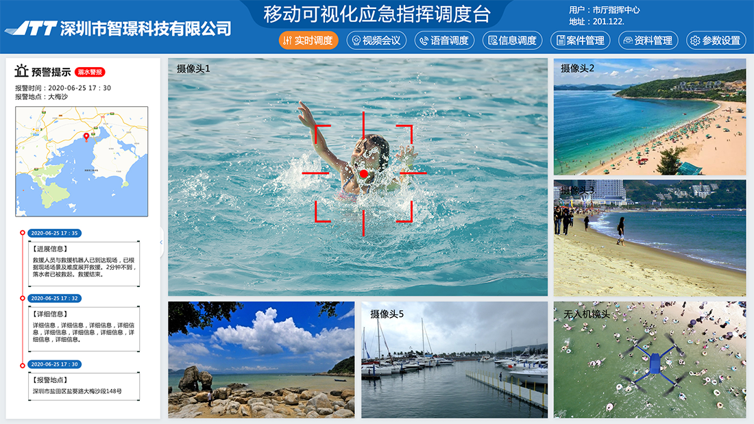每年4-9月汛期,廣西、貴州、廣東、湖南、江西、重慶等26省年會都遭受洪水災害的影響。據統計,僅2020年受災人數就達1122萬。通過水域救援系統則可以提前通過前端監測到現場情況,系統同時也集成GIS地圖定位現場區域,在后端收到圖像后會跟前端聯動,及時派遣水上救援艇進行多人營救,以提高緊急搜救效率,降低更多損失。