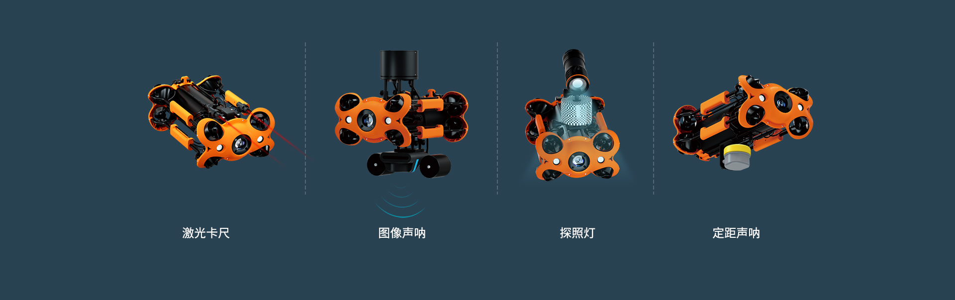 支持配件搭載,滿足多應(yīng)用場景需要:機(jī)械臂、USBL定位、輔助相機(jī)、圖像聲吶、激光卡尺、探照燈、定距聲吶;