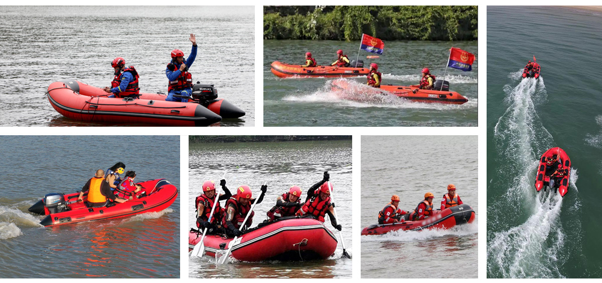 型號:ZJ001-C-15 尺寸:艇長430cm,艇寬195cm 氣囊直徑:50cm 翹首高度:70cm 氣室數量:5個 設計最大載員:9人 設計最大載重:1000kg 設計最大航速40km/h