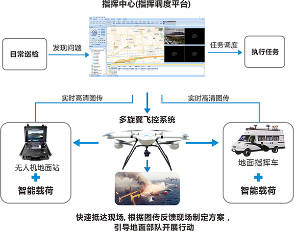 能識別指揮中心的指令,在進行監(jiān)測任務(wù)的同時可執(zhí)行喊話,投擲物品,照明等任務(wù);
